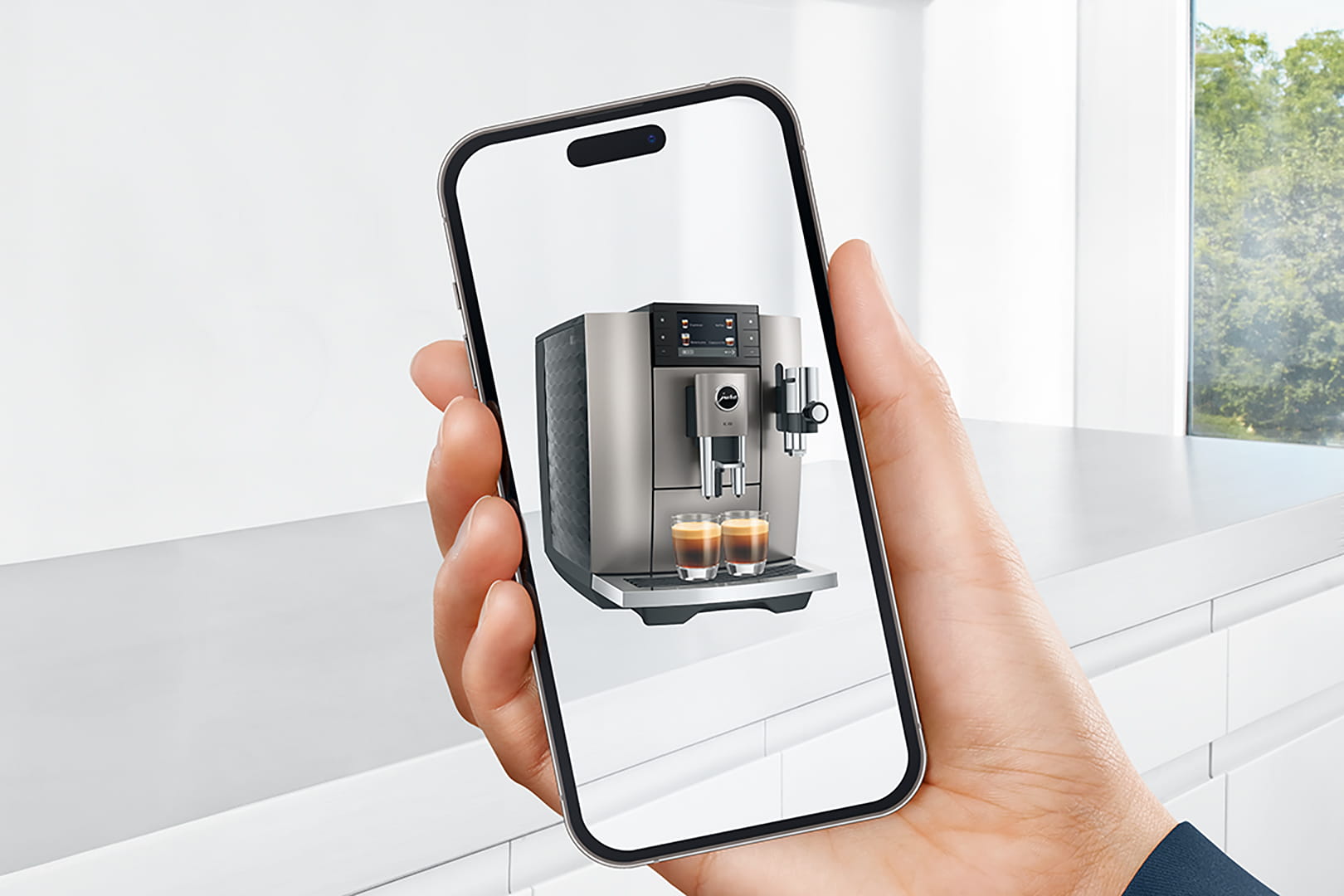 Bekijk de E8 in het 3D-model en ervaar de koffiemachine virtueel in je kamer.