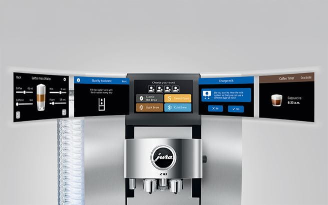 Voor zijn uitstekende expertise is de Z10 uitgerust met een P.R.G.2+ precisiemolen, beheerst hij vijf verschillende bereidingsprocessen en maakt hij gebruik van innovatieve technologieën. Coffee Timer, cafeïneregelaar, Milk Assistant en Quality Assistant vormen het slimme kwartet dat is voorbehouden aan de Z10 en benadrukken zijn onmiskenbare uitmuntendheid.